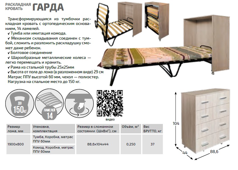 Раскладушка-тумба найдет применение как в городской квартире, так и на даче, а также станет отличной альтернативой привычной раскладушке, каркас которой сделан из стальных труб.